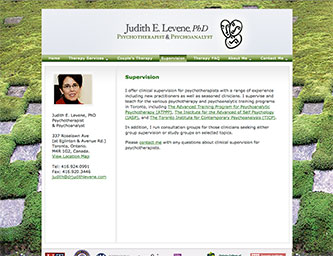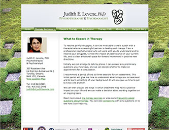 Keep original design by Dot The Eye Pictures and rebuild navigation and background coding, add new pages such as an informative frequently asked questions for new therapy clients in Toronto - and expand the information about the other services.